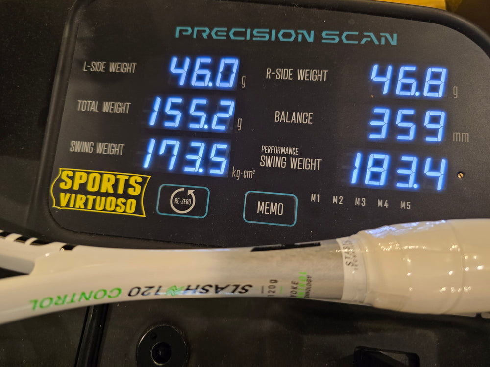 Its weight remains 120 g, but its swing weight has been lowered to generate even more acceleration off the racquet head, with increased maneuverability for greater execution speed.