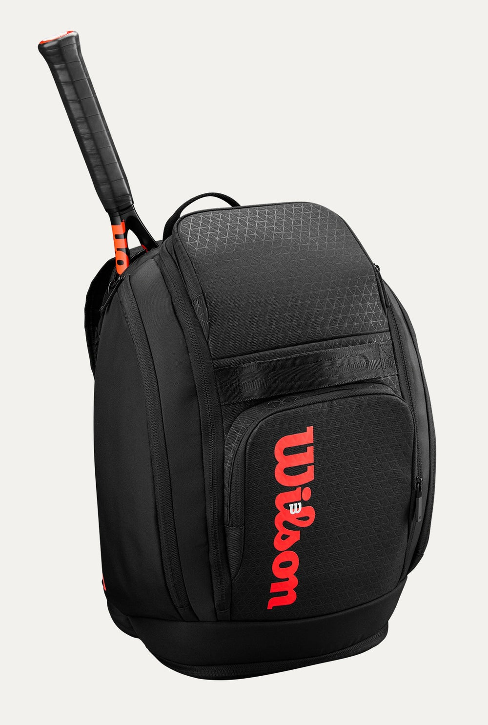 The ideal accessory to match the game-enhancing racket franchise, the Clash V3 Super Tour bag combines a bold, dynamic design with uber-functional utility features to give tennis players an organizational advantage. This Super Tour 3 Pack holds up to three tennis rackets in a single main compartment, plus apparel and other equipment. It's crafted from premium fabric embellished by the subtle triangle pattern from the Clash rackets, Additional features include three exterior side pockets for storing smaller personal items and valuables and a dual-carry system with both a grab handle and adjustable backpack straps. Made from durable, easy-to-clean polyester, it includes a triangular carabiner that both symbolizes the racket design and functions as a fence hanger.