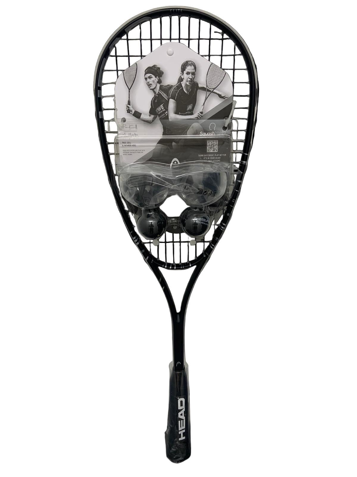 This set include: squash racket Spark Elite, squash goggles and 2 yellow dots balls