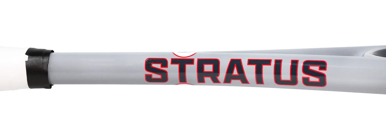Nouvelle raquette polyvalente pour le simple comme pour le double, la Stratus présente une tête et une zone de frappe plus larges, réparties uniformément. Sa tête convexe offre une rigidité et un contrôle accrus pour un jeu sur tous les terrains.