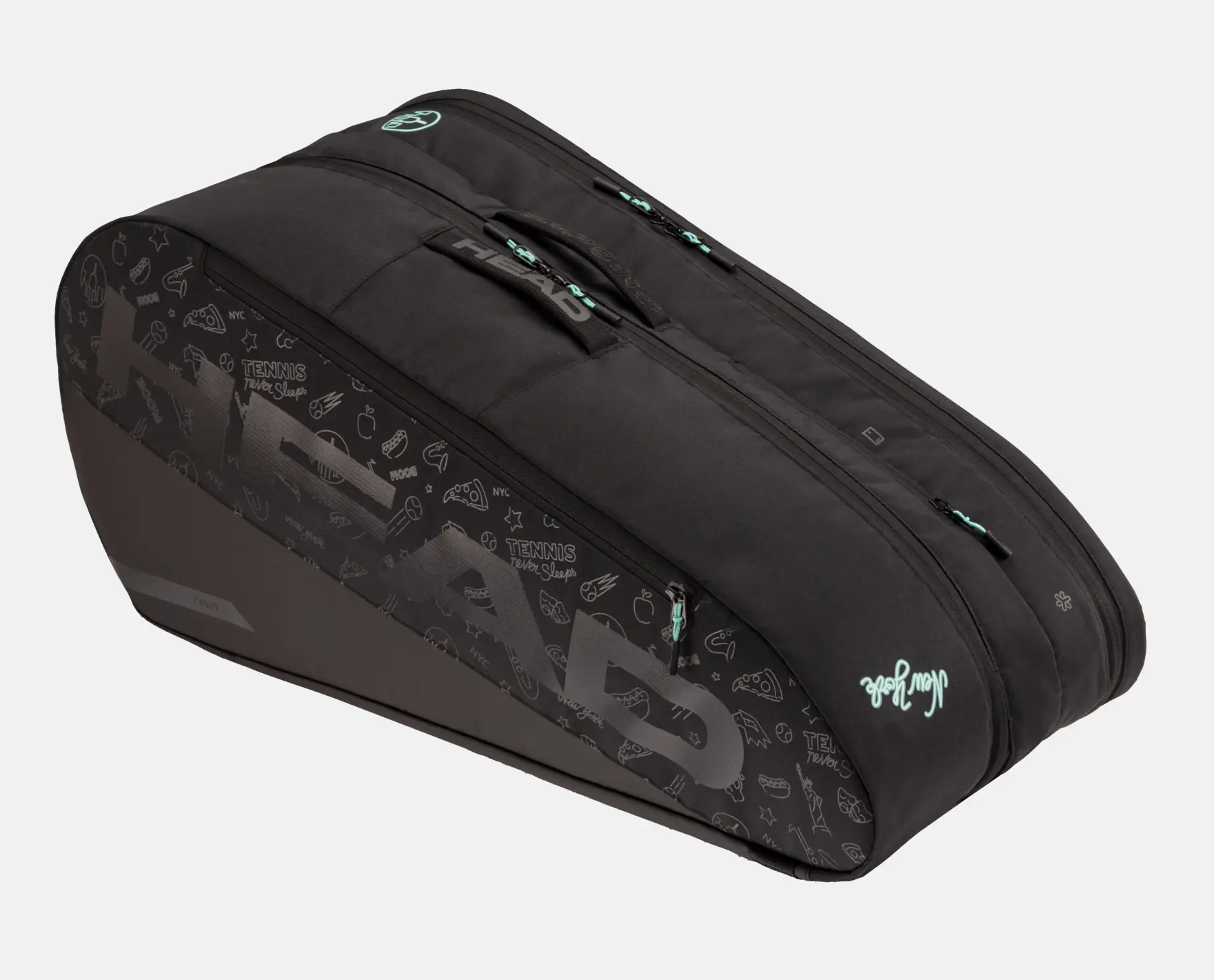 Ressentez l'énergie de New York avec le sac à raquettes TOUR L NEON 2025 en édition limitée, au design original et ludique, orné de gratte-ciels, de la Statue de la Liberté et d'une part de pizza. L'imprimé noir réfléchissant sublime le motif et vous permet d'être vu de nuit, tandis que les logos noirs brillants ton sur ton ajoutent à son look moderne. À l'intérieur, la doublure bleu clair arbore le même motif que l'extérieur. Ce sac est idéal pour transporter les raquettes NEON BOOM en édition limitée, versions innovantes des modèles BOOM classiques, fabriquées en fibres de carbone bio-circulaires et affichant un design d'inspiration new-yorkaise.