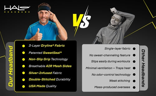 NOUVEAU HALO X2 DE 2" DE LARGE - LE BANDEAU À ENFILAGE EST LE BANDEAU ANTI-TRANSPIRATION PARFAIT.