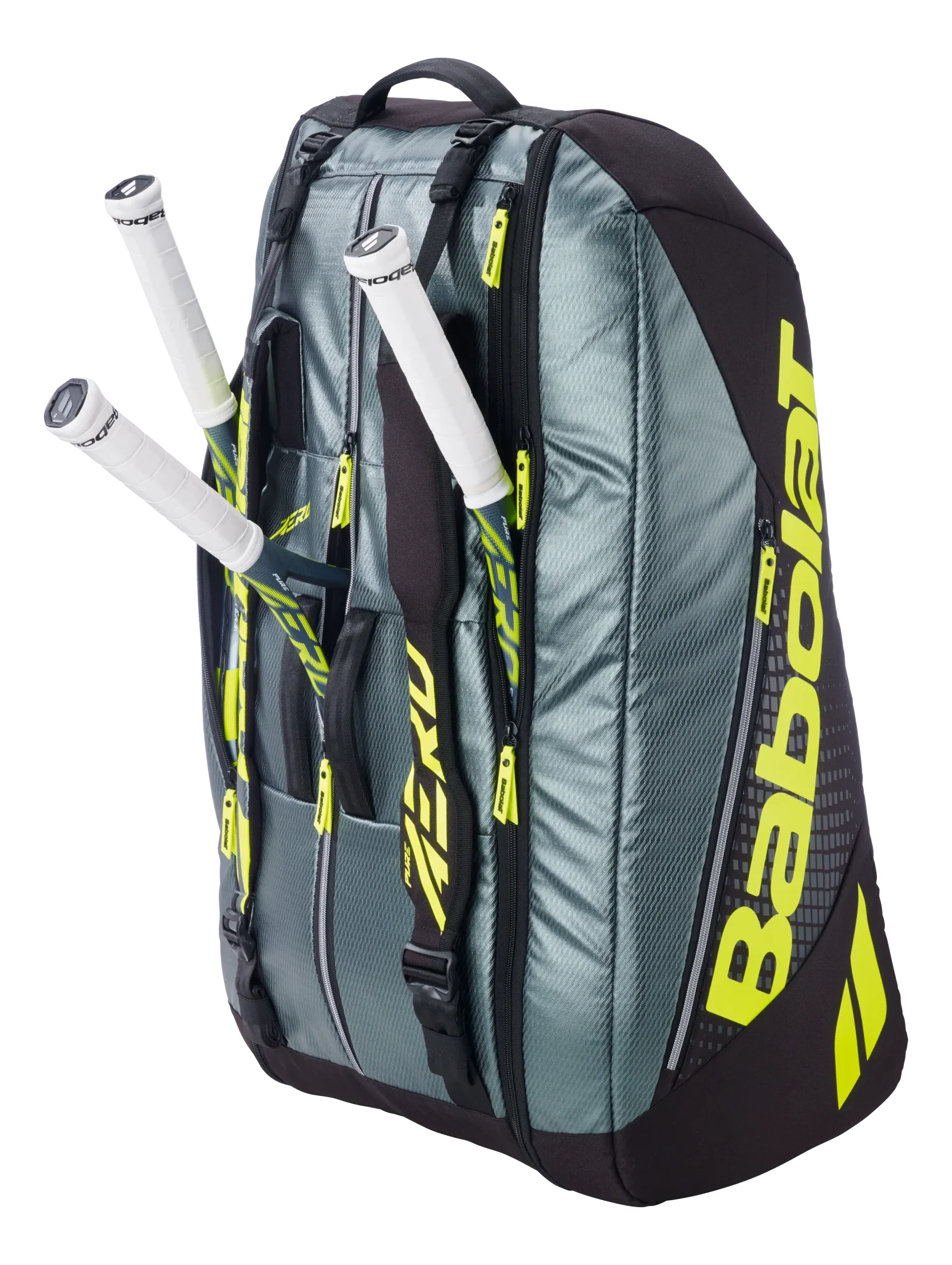 Avec ses trois compartiments, le sac RH12 Pure Aero peut facilement transporter au moins 12 raquettes ou tout l'équipement de tennis dont vous avez besoin.