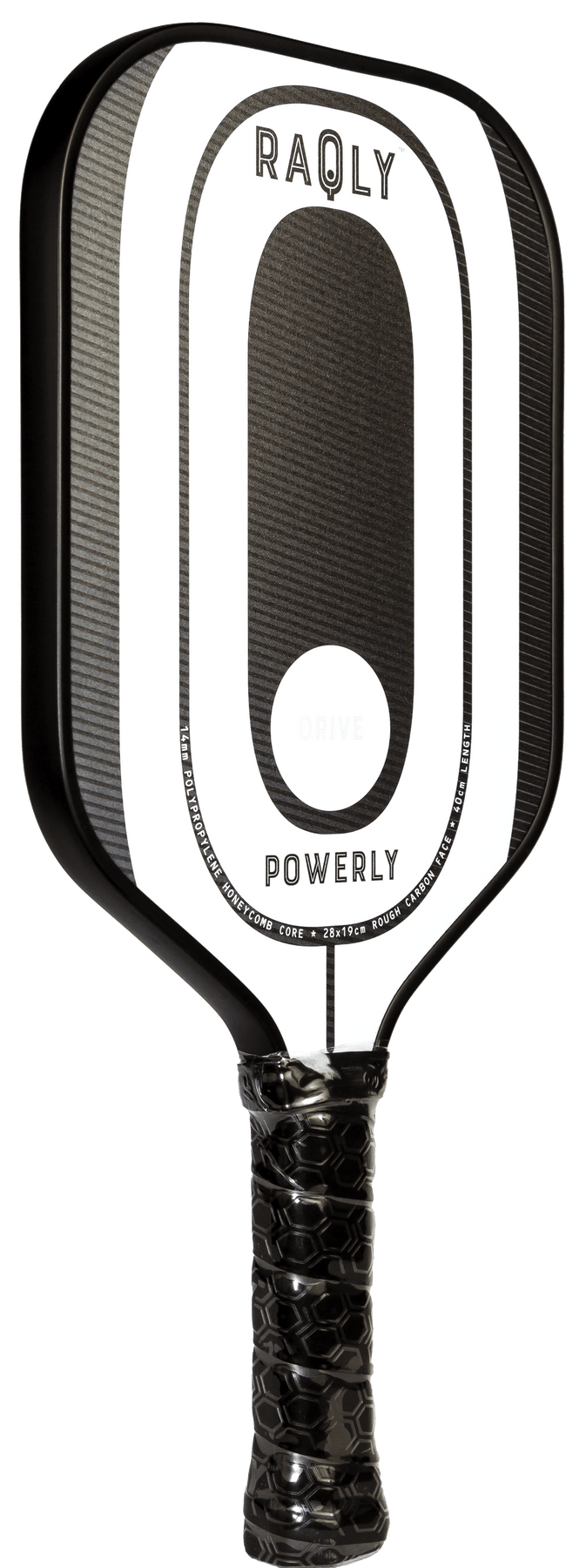 Mesurant 40 cm (15,75") de longueur et 19 cm (7,48") de largeur, la pagaie de pickleball RAQLY Drive Powerly Carbon est conçue pour le jeu standard et offre la combinaison parfaite d'équilibre et de puissance. La hauteur du visage mesure 28 cm (11,02 "), offrant une surface de frappe généreuse pour accueillir une large gamme de coups.